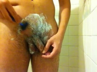 浴室里的实验:撸管,在避孕套里撒尿,然后我想射在填充的避孕套里,但我没有管理它。
